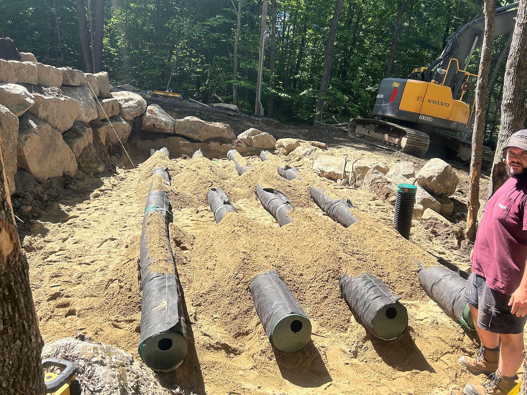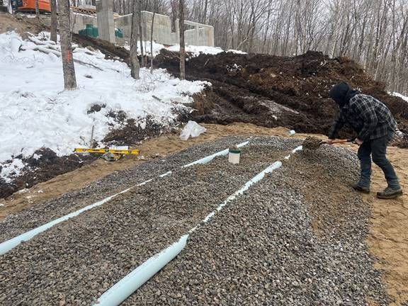 Notre service clés en main débute par un test de sol pour déterminer la capacité d'absorption du terrain et le type de système approprié. Nous coordonnons ensuite le plan de technologue requis pour l'obtention des permis, puis nous procédons à l'excavation et à l'installation.